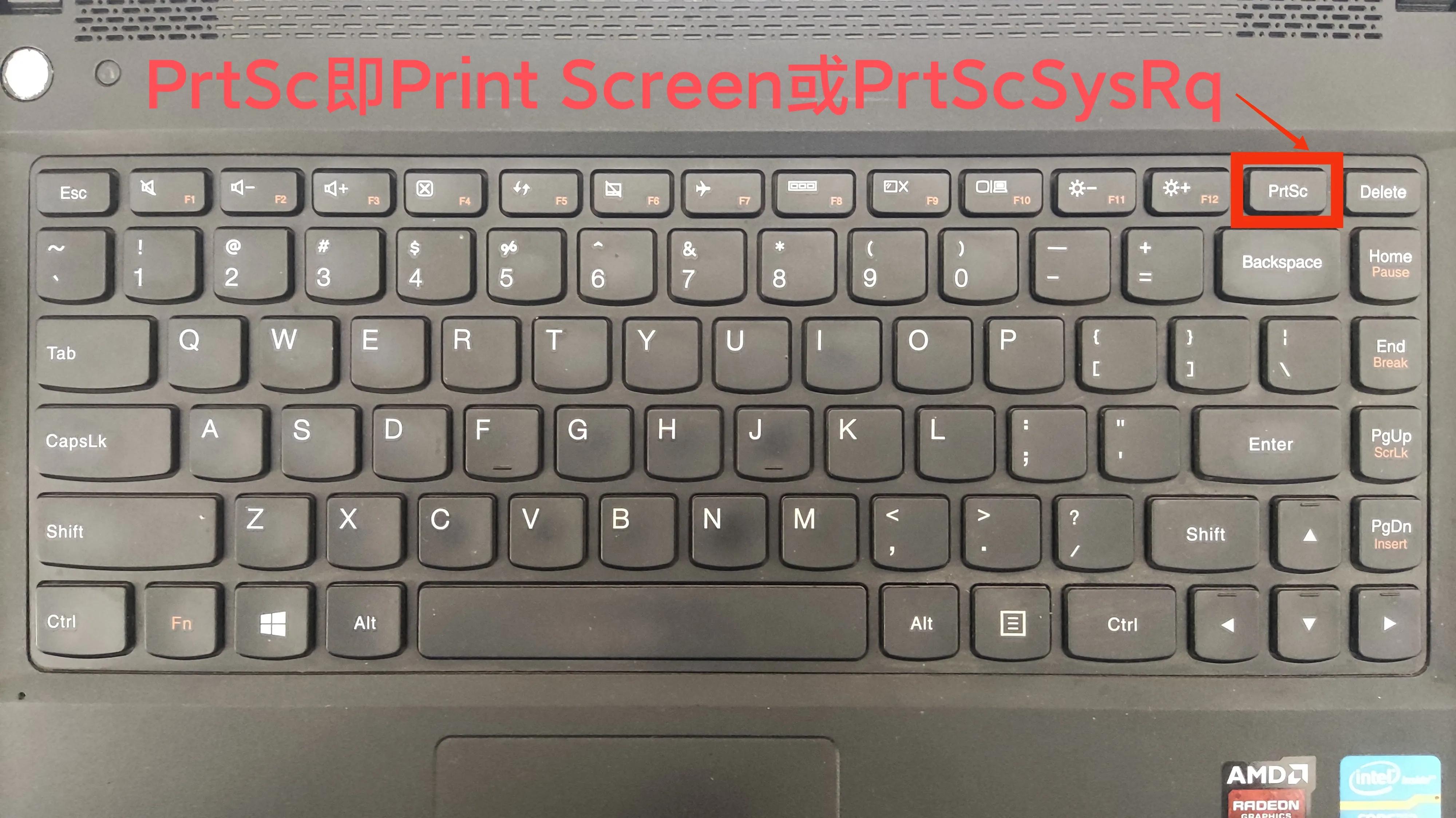 - 笔记本电脑按“PrtScSysRq”或“PrtSc”键。
