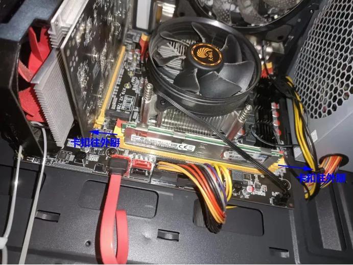 这时候我就求助当初的电脑卖家,卖家让我把主机盖打开,并拍一张机箱内部全图,看完主机内部情况后让我对内存条进行重新拆装【注:拆装前主机电源拔掉再操作】