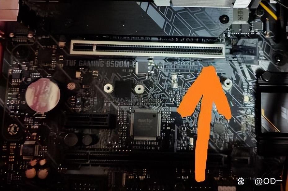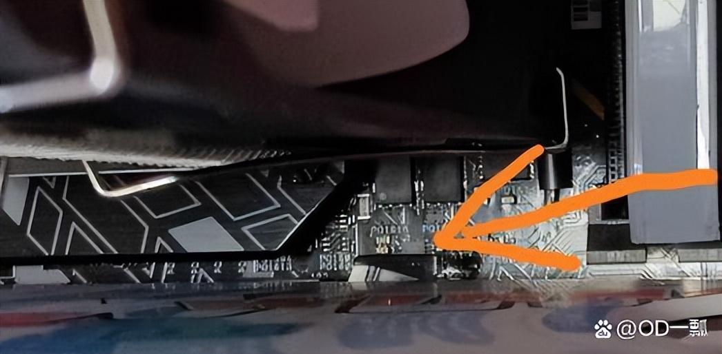 拔出电源线后,我们找到“PCIE”插口,按住卡扣。