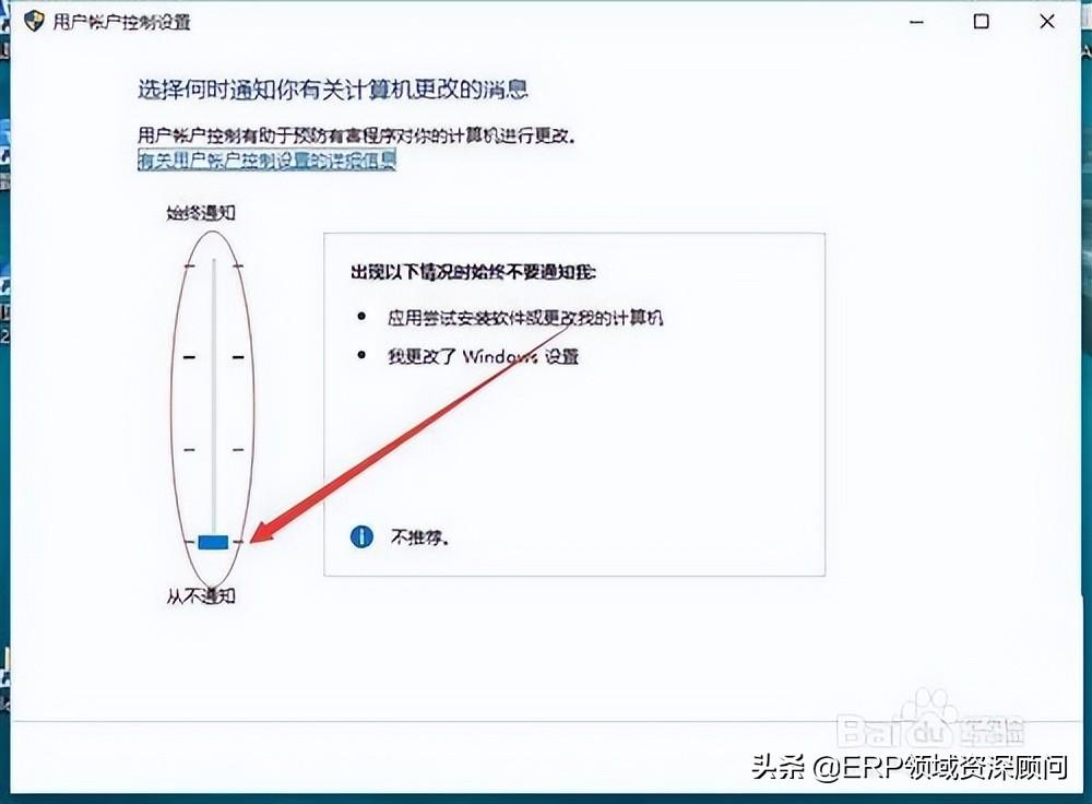 4. 在打开的窗口中,将滑块下拉到最下面(即“从不通知”)处即可