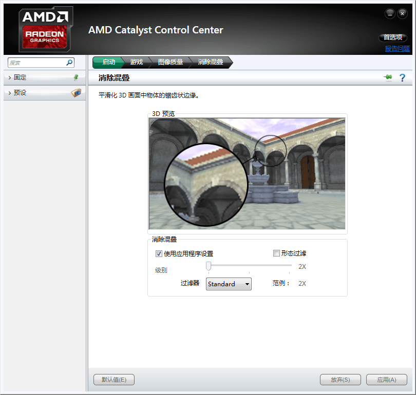 点击消除混叠 同样的(点击应用应用程序设置) 把活动杆拉到最左边