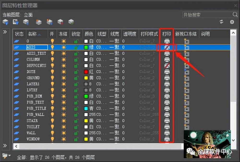 1、线条所在图层设置了不可打印