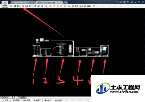 以下图六张图纸进行批量打印为例,打开图纸后点击打印按钮。