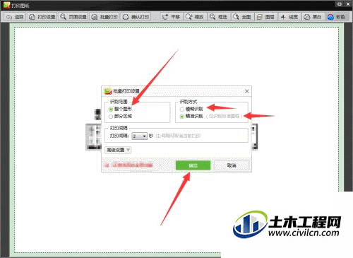 1、识别范围默认整个图形,图形中包含的所有图纸进行打印;