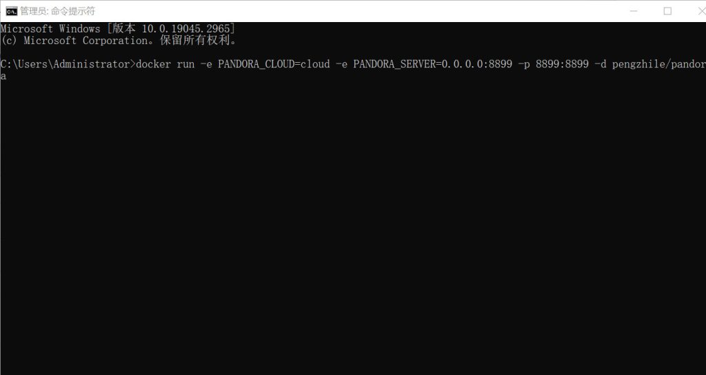 docker run -e PANDORA_CLOUD=cloud -e PANDORA_SERVER=0.0.0.0:8899 -p 8899:8899 -d pengzhile/pandora