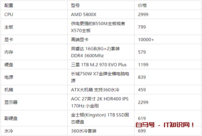 三、电脑硬件的主流配置单及配置清单解说