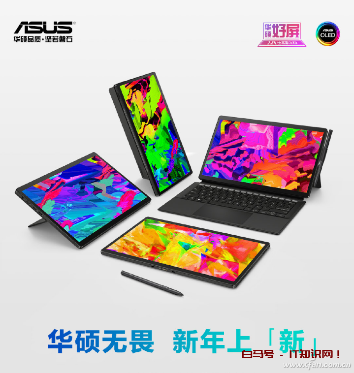 华硕Zenbook 17 Fold是全球首款17.3英寸可折叠OLED笔记本电脑。该产品的屏幕为4:3显示比例,分辨率为2.5K,支持触控,折叠后相当于2个12.5英寸的3:2 1920×1280像素显示屏。它的屏幕素质也非常不错,支持100% DCI-P3色域和杜比视界HDR认证,用户还能将它与华硕ErgoSense蓝牙键盘和触摸板一起使用,以获得常规的打字体验。
