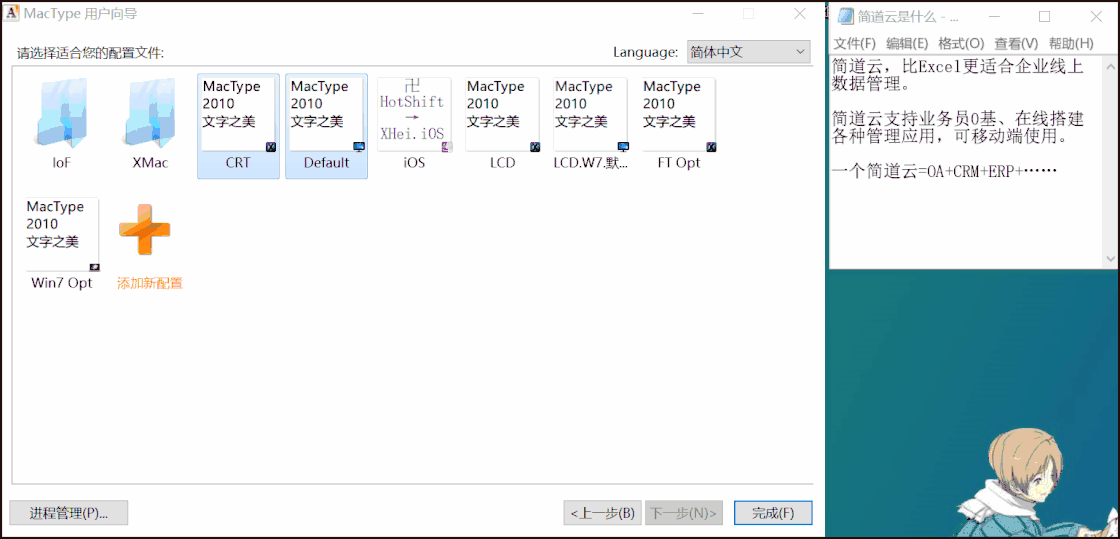 苹果 Mac 系统文字显示效果比 Windows 更加清晰锐利,颇受很多人喜爱,于是就有个这款用来模仿 Mac 渲染风格的神器,使用过程及效果如下图(注意观察右侧文本框中文字渲染效果的变化):