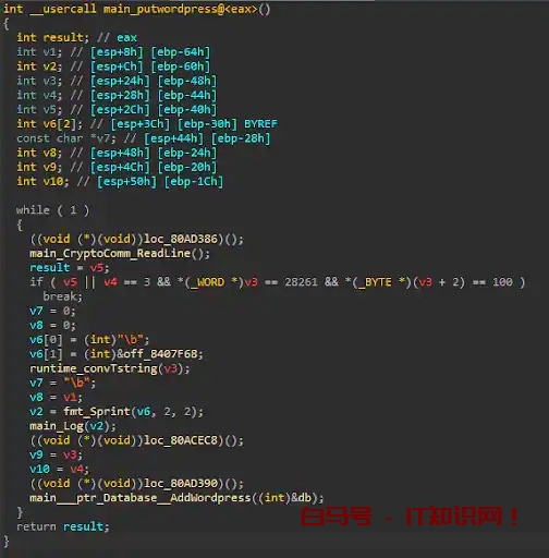 之前找到的 30 个命令列表(用于运行脚本和下载数据库、日志或文件)也已扩展,以添加针对运行 WordPress 内容管理系统的站点的能力。 下面的反汇编代码显示了新命令 put wordpress,它将新条目添加到标题为“Wordpress”和“WordpressTargetsTTL”的列表中。