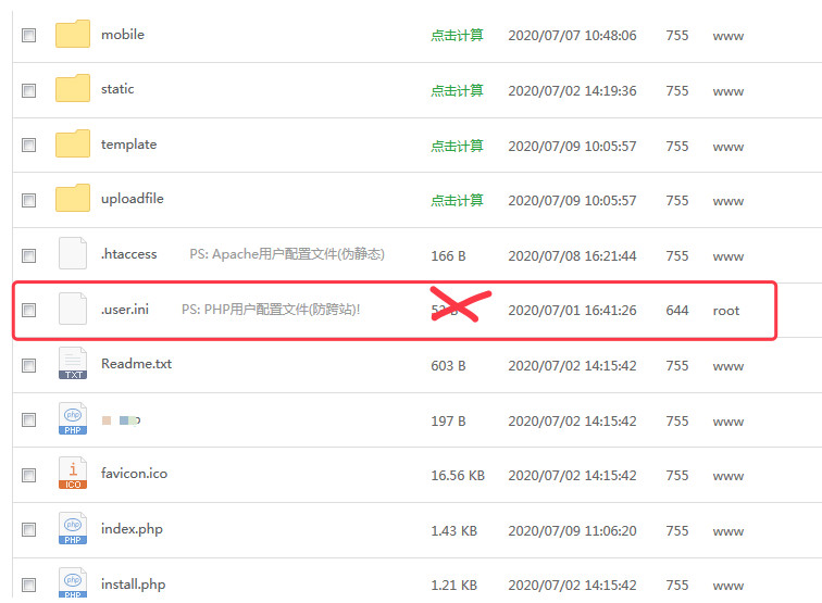 如果不会配置这个.user.ini的设计人员可以删除它(后期一定要设置这个文件的权限),如何配置.user.ini教程里面有介绍