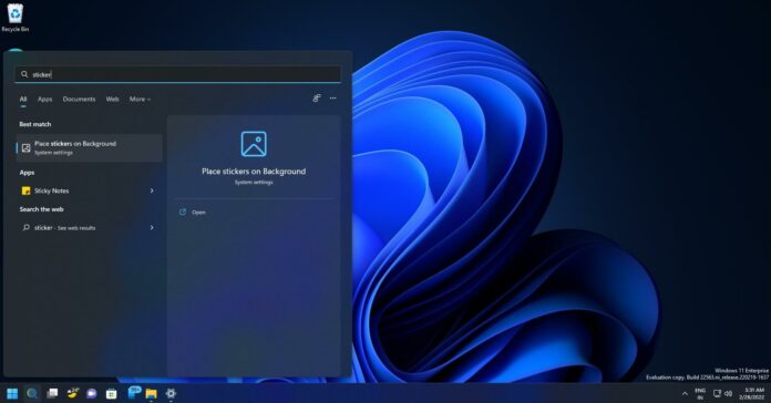 如前所述,此功能在预览版本中部分起作用。 要使用新功能,您需要在 Windows 搜索中搜索“贴纸”并选择“将贴纸放在背景上”。