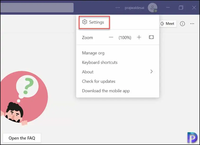 让我们看看在 Microsoft Teams 中减少背景噪音的步骤。 首先,在您的计算机上启动 Teams 应用程序。 我假设您已经使用您的帐户登录到 Teams 应用程序。