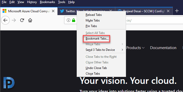 要为多个标签添加书签,只需按住 ctrl 键并选择标签。 所选选项卡的顶部有一个蓝色边框。 现在右键单击任何选项卡,然后单击 书签选项卡…