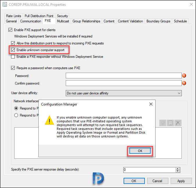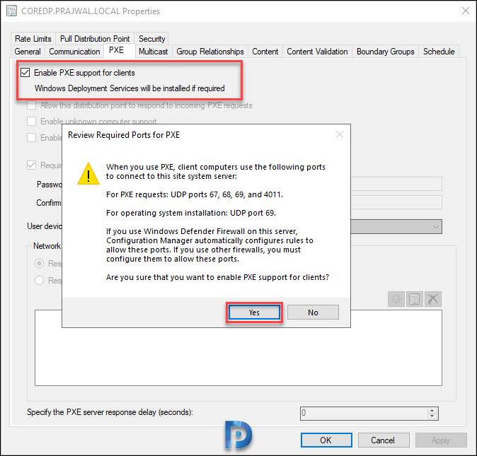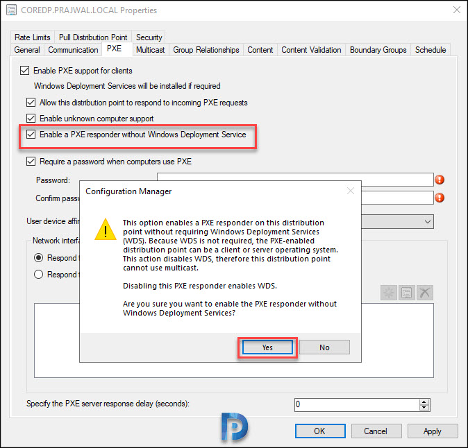 最后选中复选框 – Enable a PXE responder without Windows Deployment Service 。 在警告框中,单击 是 。