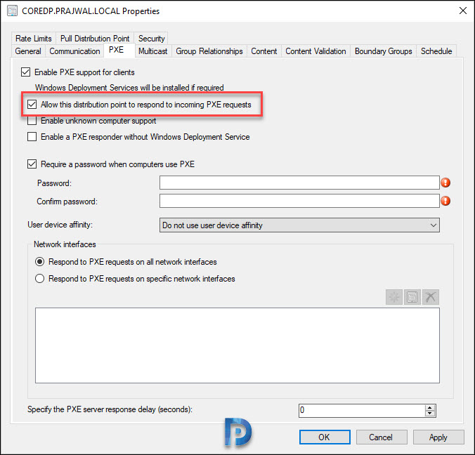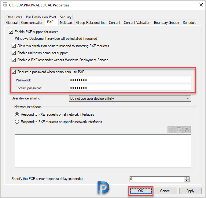 您可以设置 PXE 密码(这不是强制性的,但建议这样做)。 单击 应用 和 确定 。