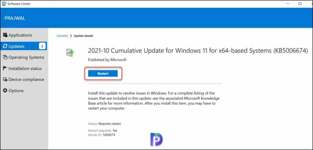 在上述步骤中,我们创建了一个 ConfigMgr ADR 以将 Windows 11 更新部署到我们的端点。 让我们在客户端计算机上测试 Windows 11 更新部署。