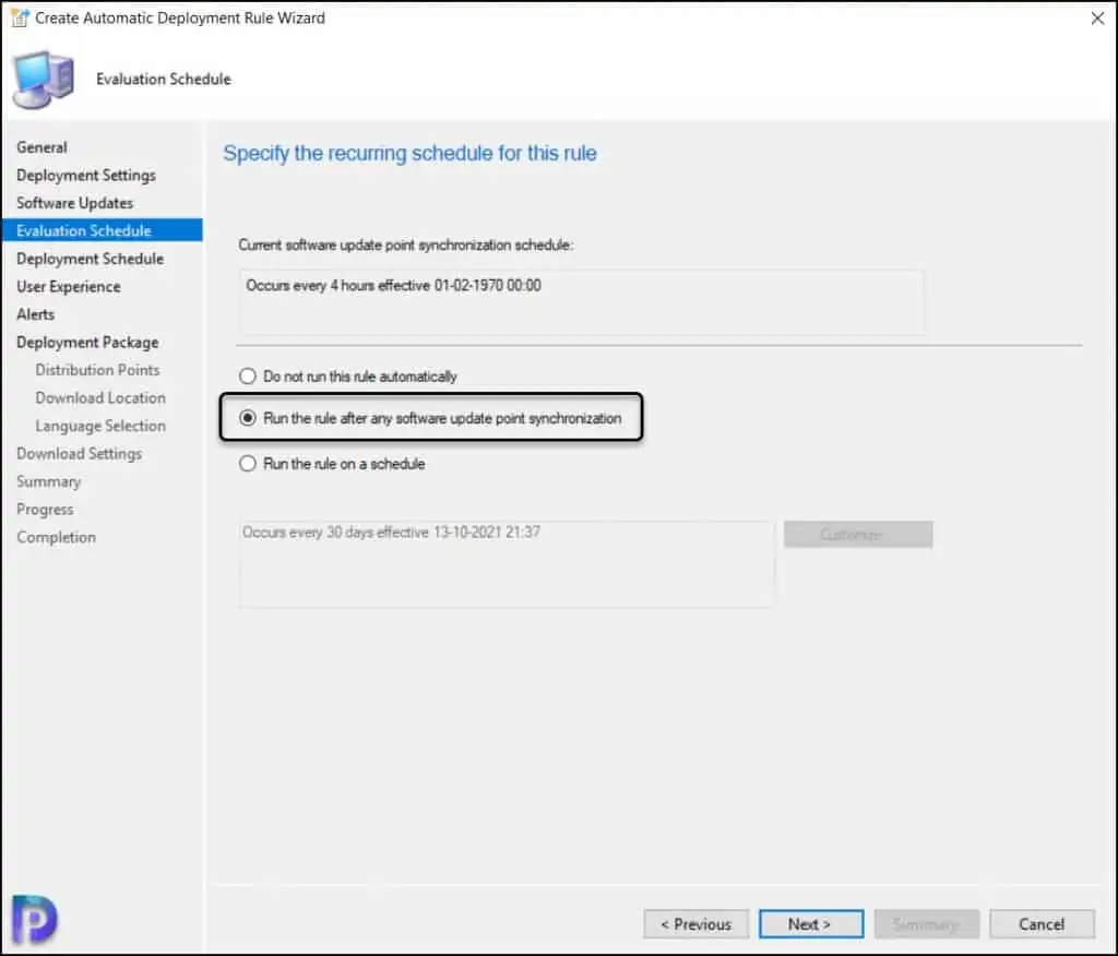 - 按计划运行规则 – 定义一个计划以运行 ConfigMgr ADR。