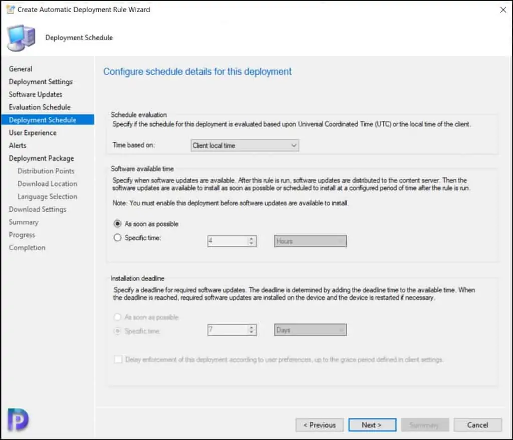我已选择软件可用时间尽快,因为我正在我的实验室中部署 Windows 11 更新。 对于生产环境,请始终选择特定时间并允许至少 4 小时以使更新可用。