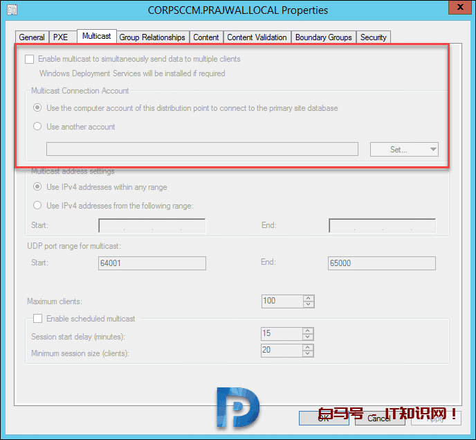 - 如果启用 PXE 响应程序,多播选项将灰显/禁用。