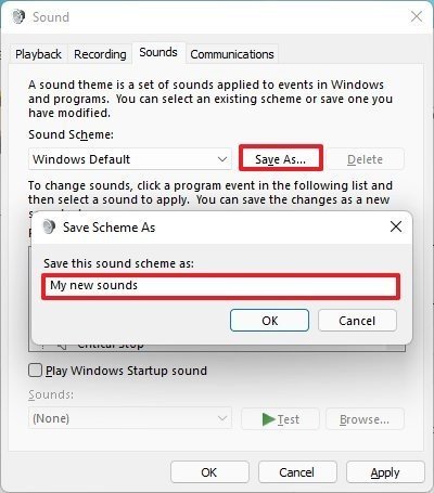 完成这些步骤后,自定义设置将另存为 Windows 11 的新声音方案。