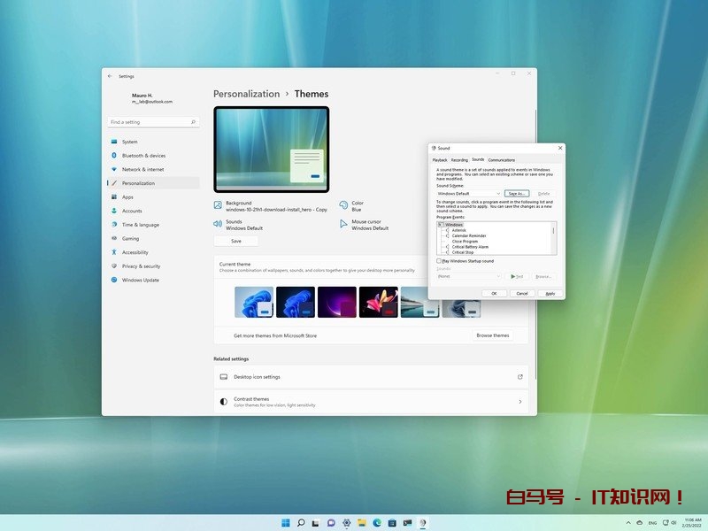 Windows 11 为事件和应用程序提供了新的系统声音,以与整个桌面的设计语言保持一致。 微软甚至专门为暗模式创建了默认声音的变体。 在此版本中,您将为几乎所有默认声音添加新声音,例如电池、紧急停止、连接和断开设备、感叹号、星号等。 此外,甚至每次计算机启动时都会播放新的启动声音。