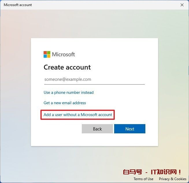 - 单击 添加没有 Microsoft 帐户的用户 选项。