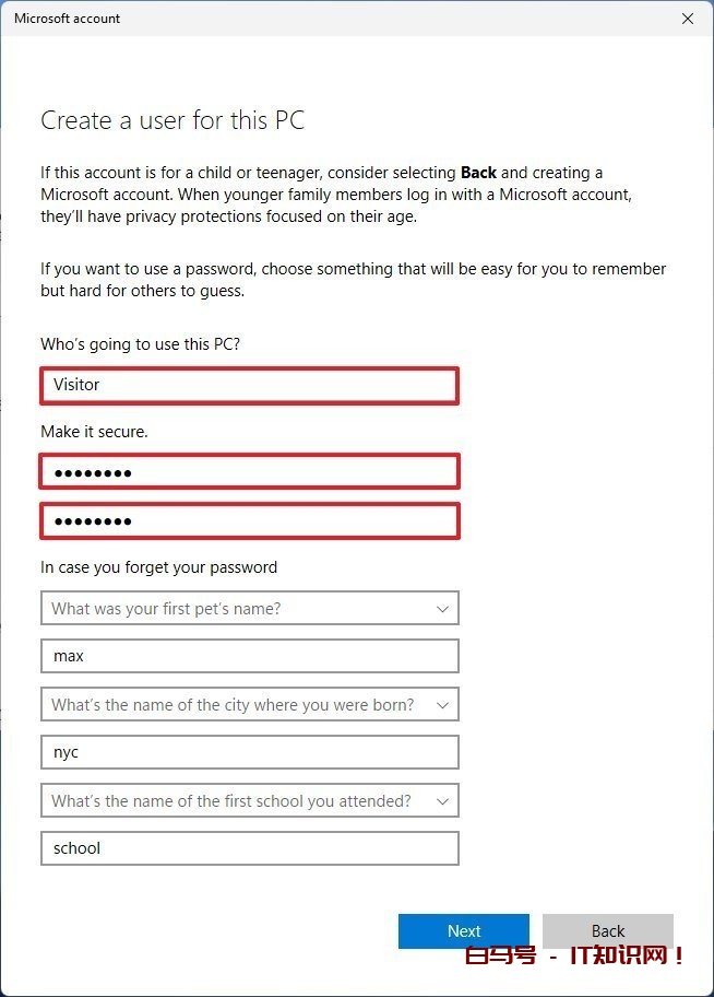 完成这些步骤后,将创建受限制的本地帐户以与其他人共享计算机。