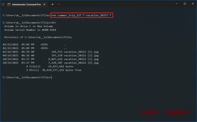 完成这些步骤后,命令提示符将使用命令中可用的新名称重命名文件。