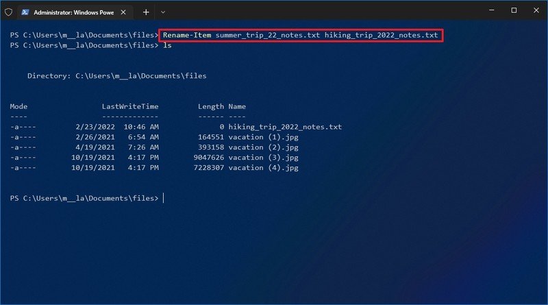 例如,此命令将文件重命名为“summer_trip_22_notes.txt”: