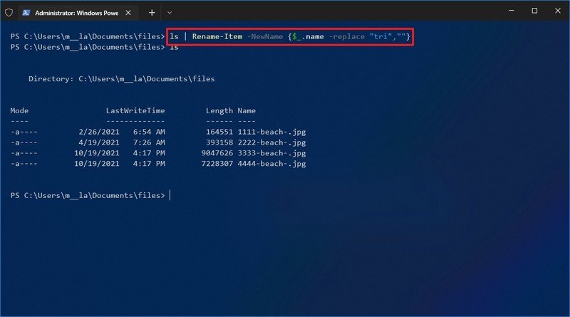 完成这些步骤后,该命令将使用您在命令中指定的替换来修改文件名。