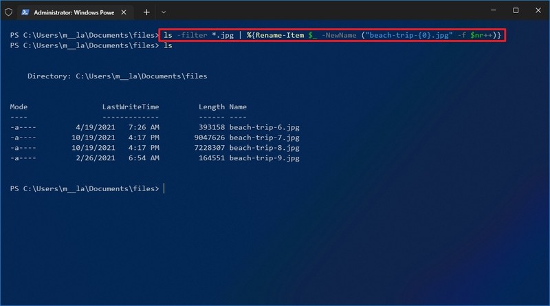 您还可以使用 PowerShell 在 Windows 10 上重命名多个文件。尽管使用此工具,有很多方法可以操作文件,但本指南中的说明仅用于开始使用最常见的场景。