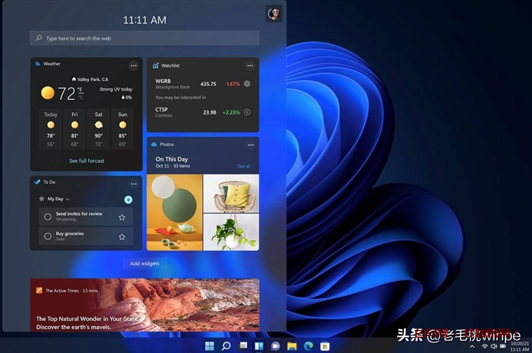 小部件:虽然它们已经存在了一段时间,包括在最近的Windows 10更新中,现在可以直接从任务栏访问小部件,并对其进行个性化设置,以查看想要的任何内容。