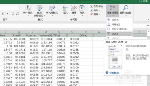 点击排序和筛选下的下拉列表的图标之后,会出现几个选项,选择“筛选”即可