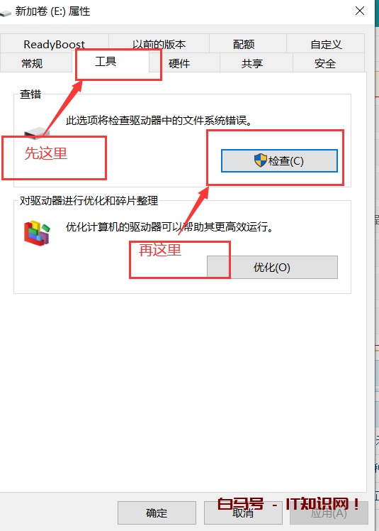 第三步,在属性界面里面找到“工具”选项栏,然后点击“检查”。