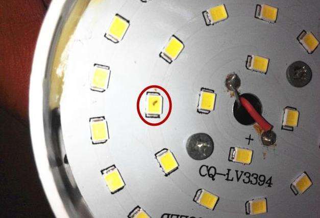 检查:用肉眼观察,灯珠上面有小黑点的,证明是烧坏了(并不是所有不亮的灯珠都是坏的,从不亮的灯珠里面找)。