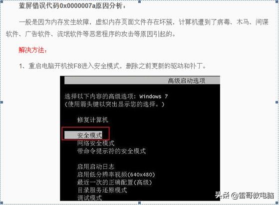 电脑系统蓝屏相信很多用户都有听说过或是亲身遇到过,使用过程中也难免会遇到蓝屏的问题。最近有用户在使用电脑过程中出现蓝屏代码 0x0000007A的问题,蓝屏代码0x0000007A怎么办呢?下面,雷哥介绍电脑蓝屏代码0x0000007a的解决方法。