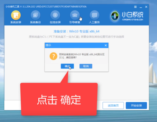 17.选择已安装的系统盘C,然后单击“确定”。 [开始安装],如下图: