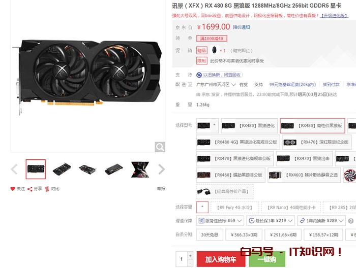 AMD RX480 8G为现在红色阵营新一代主流游戏卡,性能可参阅《红色帝国的反击,Radeon RX 480 8GB显卡同步评测》,如果纠结4G和8G的话,可以参阅《RX 480 4GB/8GB游戏对比测试:4GB显存真的够用吗?》 。讯景新一代的黑狼版外观有改进,比此前凌厉一些,京东商城1699元可用1000-40券,还送个罗技G302鼠标,这个鼠标蛮好用的,算下来很优惠,近期要买主流游戏卡的玩家不要错过了。