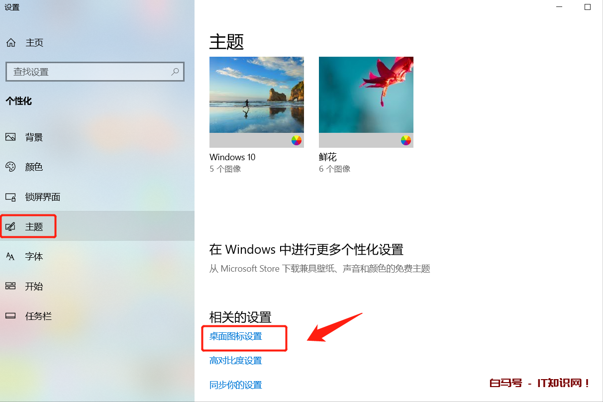 点击进入“个性化”选项,将界面切换到“主题”,选择“桌面图标设置”选项。如下图: