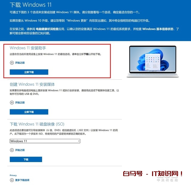 【想要升级Windows 11系统的朋友请先点击下方链接进入Windows 11系统下载页面,后面我们会用到。Windows 11系统下载页面:点此进入】