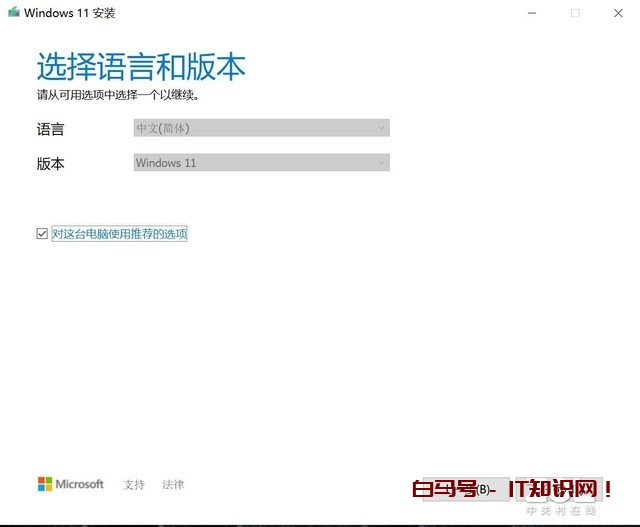 安装之后打开软件,先选择系统语言和版本,也可直接勾选“对这台电脑使用推荐的选项”。选好之后点击右下角的“下一页”按钮。