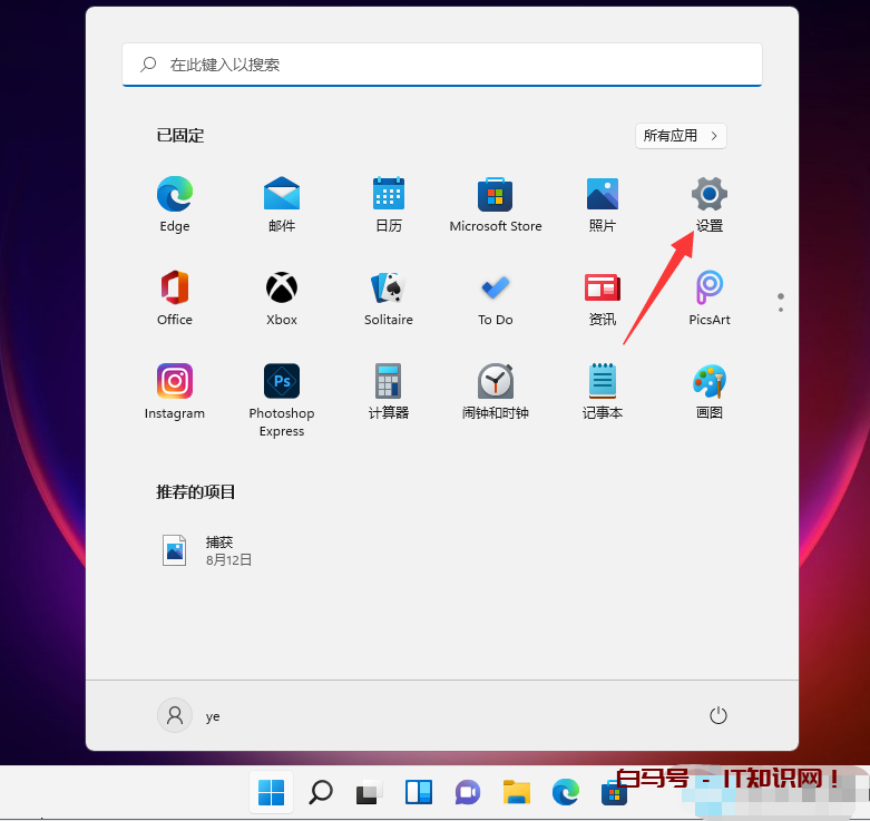 1、首先,点击桌面任务栏的“开始菜单”,在弹出的界面中选择打开“设置”界面,如图所示;