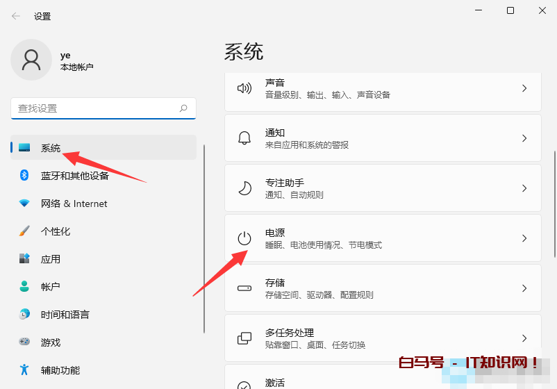 2、接着,在打开的设置界面中,依次点击“系统-电源”选项,如图所示;