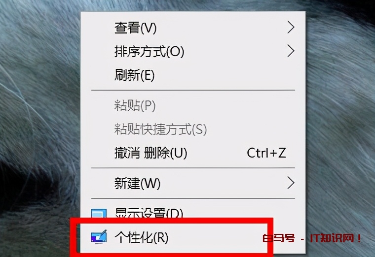 1、首先在桌面的空白地方右击,然后再点击个性化。
