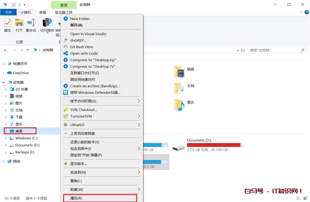 第一步:打开“此电脑”,右键点击左侧导航窗格中的“桌面”,选择“属性”,打开“桌面 属性”窗口。如图: