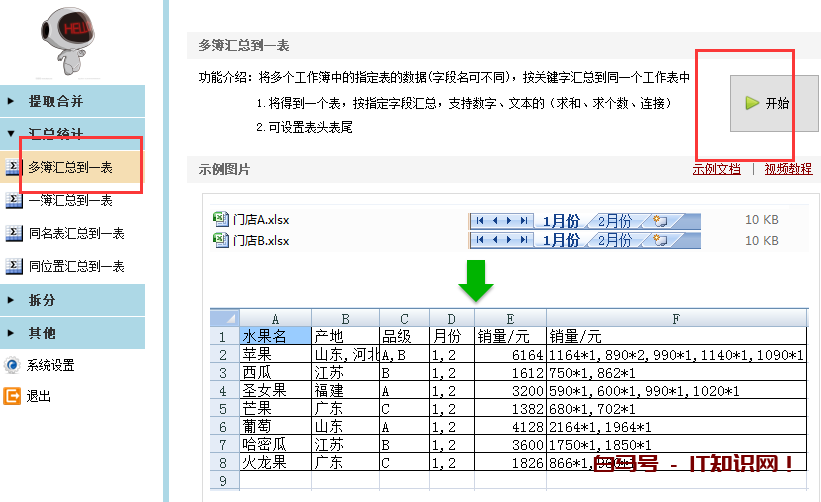 4.选择【多簿汇总到一表】,然后点击【开始】