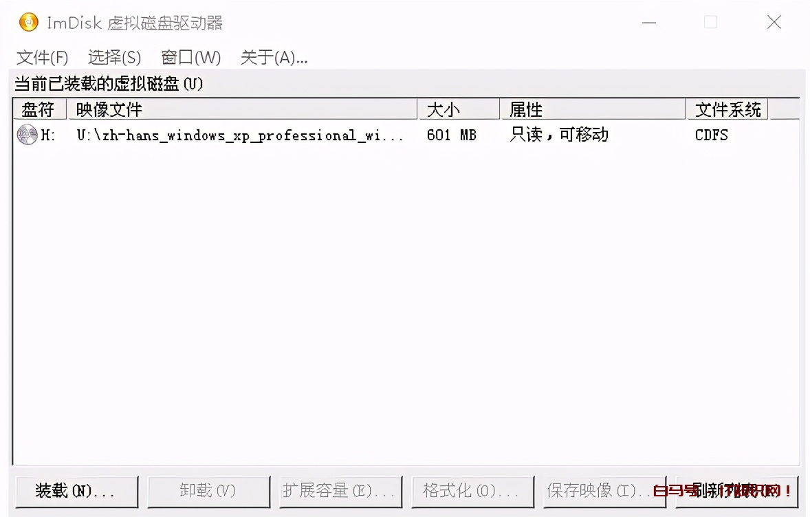 找到PE系统中的ImDisk虚拟光驱,将xp iso文件装载到虚拟光驱中。