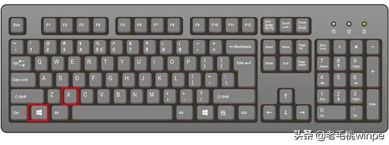 第一步:同时按下“win+x”组合快捷键,在弹出的窗口中选择打开“设备管理器”;