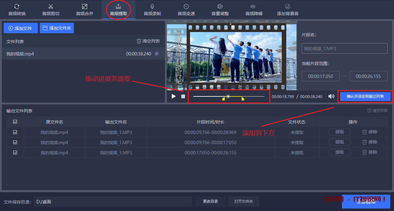 如果你看到一个视频,想要单独获取里面的声音,那么可以选择「音频提取」功能。不管是全部提取,还是局部提取,都可以自定义调节,简单又粗暴。